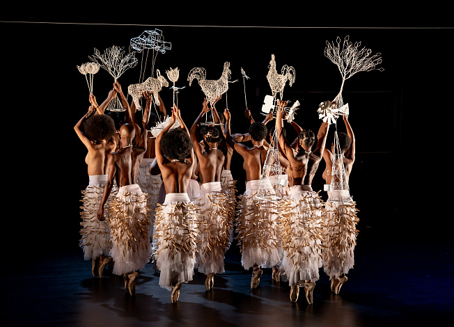 Спектакль «Заштрихованный ансамбль» южноафриканского хореографа Мамелы Ньямзы — это масштабное художественное высказывание, выросшее из камерного моноспектакля «Умирающий лебедь». Постановка бросает вызов канонам классического балета, которые долгое время отвергали определенные типы телосложения, цвета кожи и прически. В представлении участвуют десять танцовщиков с классической подготовкой, представляющих различные этнические группы, а также оперная певица и живой музыкант. Хореография органично соединяет западную классику (включая музыку Сен-Санса) с южноафриканскими вокальными партитурами, а балетные па переплетаются с африканскими танцевальными традициями. Тема знаменитого лебедя здесь отражается от тысячи зеркал-смыслов, множится и спорит с поэтикой павловского оригинала.